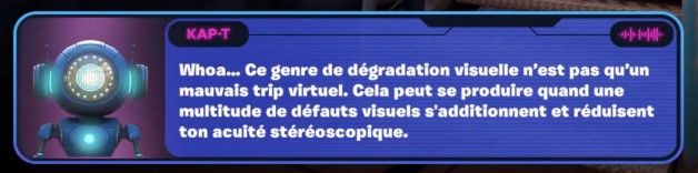 - Pédagogie intégrée : des quêtes et des dialogues permettent de mieux comprendre des troubles tels que la myopie, la modification de la perception du relief ou une audition dégradée.