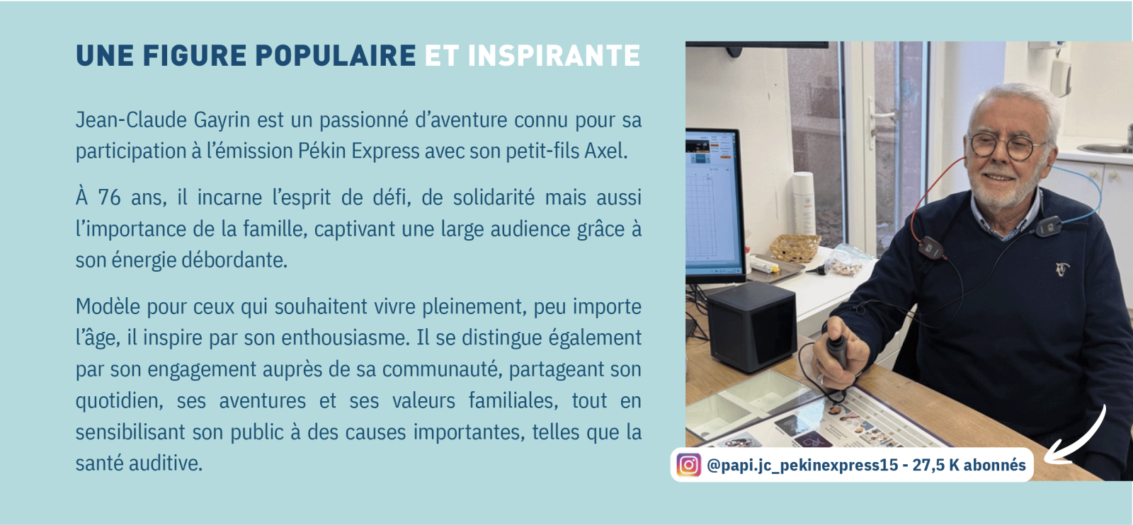 À travers des prises de parole régulières et le partage de témoignages sur le compte Instagram d’Audilab, Jean-Claude Gayrin portera un message engagé en faveur de la prévention et de la santé auditive, en mettant l’accent sur les premiers signes de la perte d’audition, les risques auditifs du quotidien et le dépistage précoce, rappelant que prévenir, c’est aussi dépister. Également bénévole au Secours Populaire, Jean-Claude Gayrin mettra prochainement à disposition, au sein de l’association, des bouchons de protection auditive et des supports d’informations sur le bilan auditif. Une initiative concrète qui vient renforcer son engagement sur le terrain, en rendant la prévention et l’accès à l’information plus accessibles.